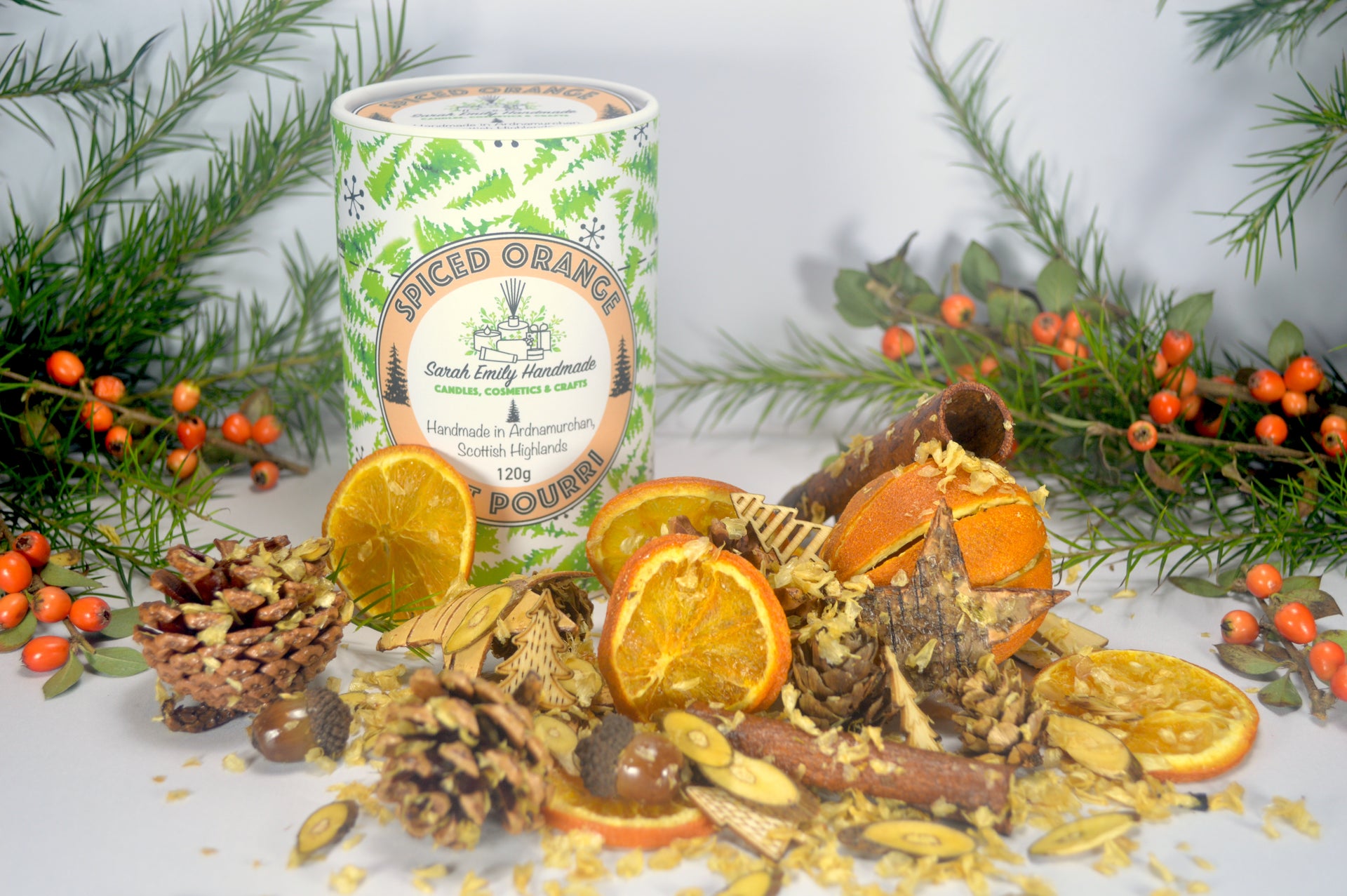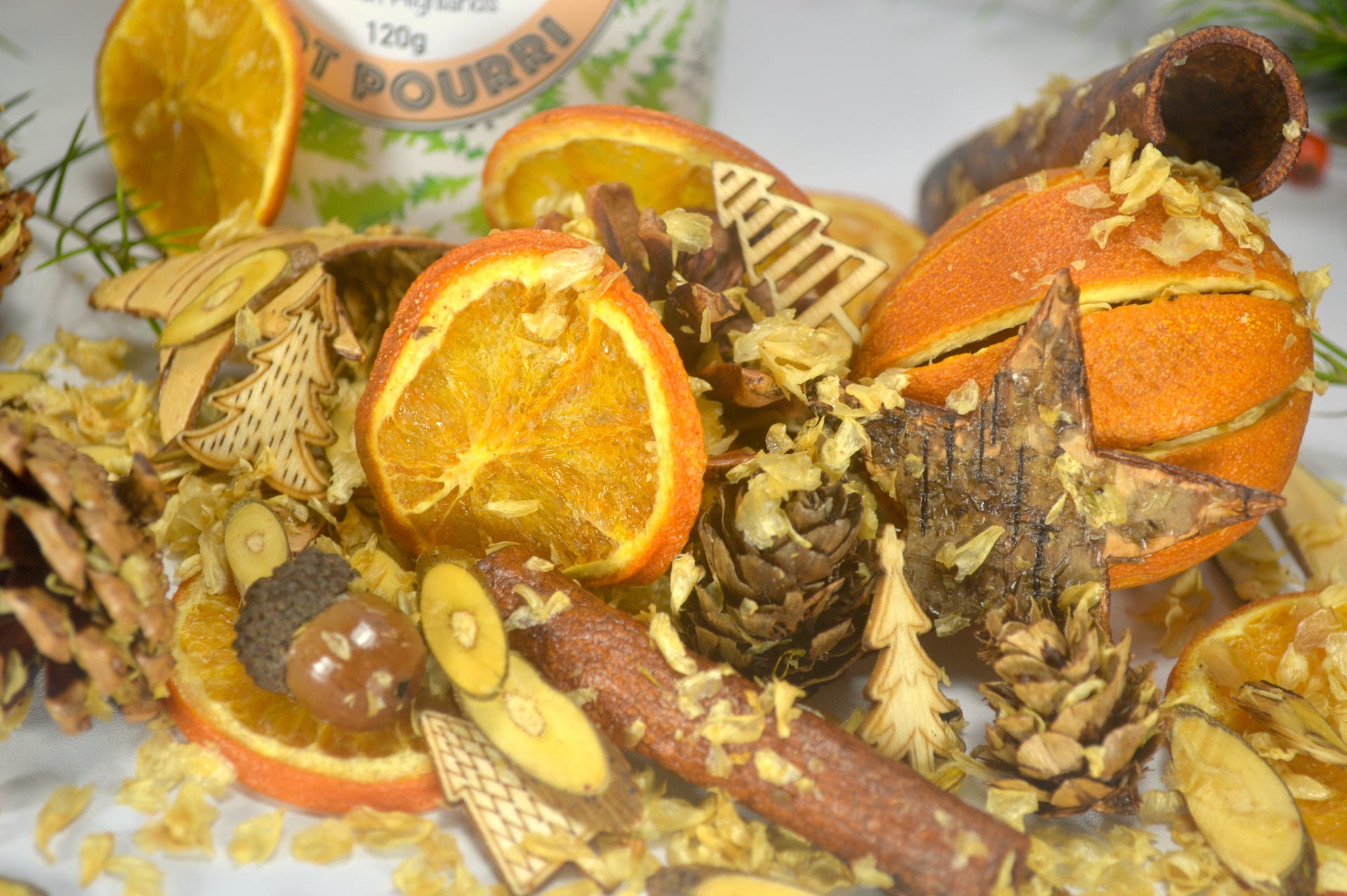 Our Pot Pourri is lovingly handmade in the Scottish Highlands. We use natural materials, the addition of dried fruits & carefully blended fragrances to create beautifully fragrant pot pourri.
